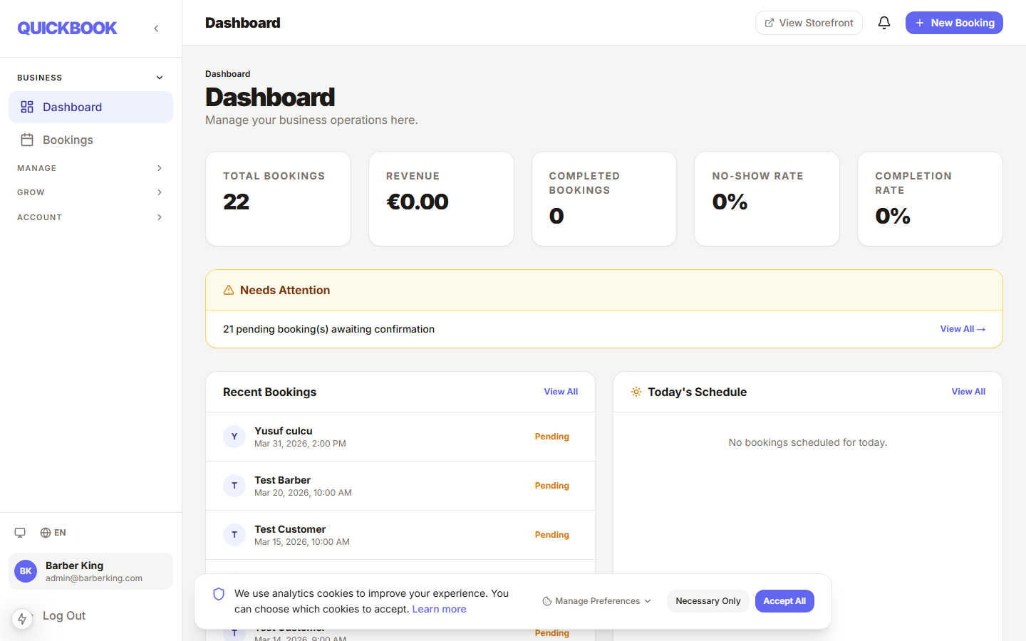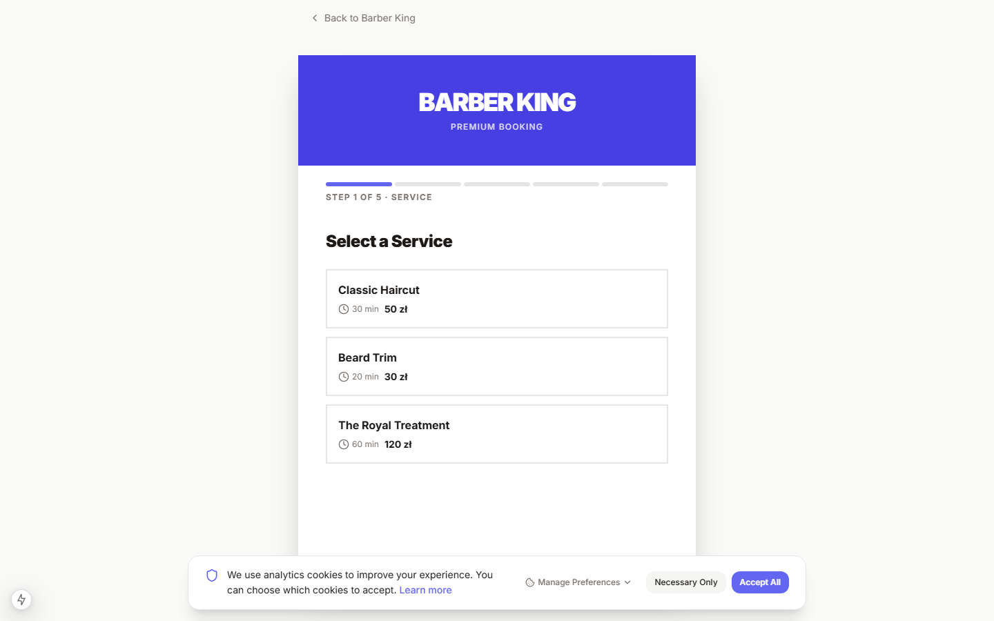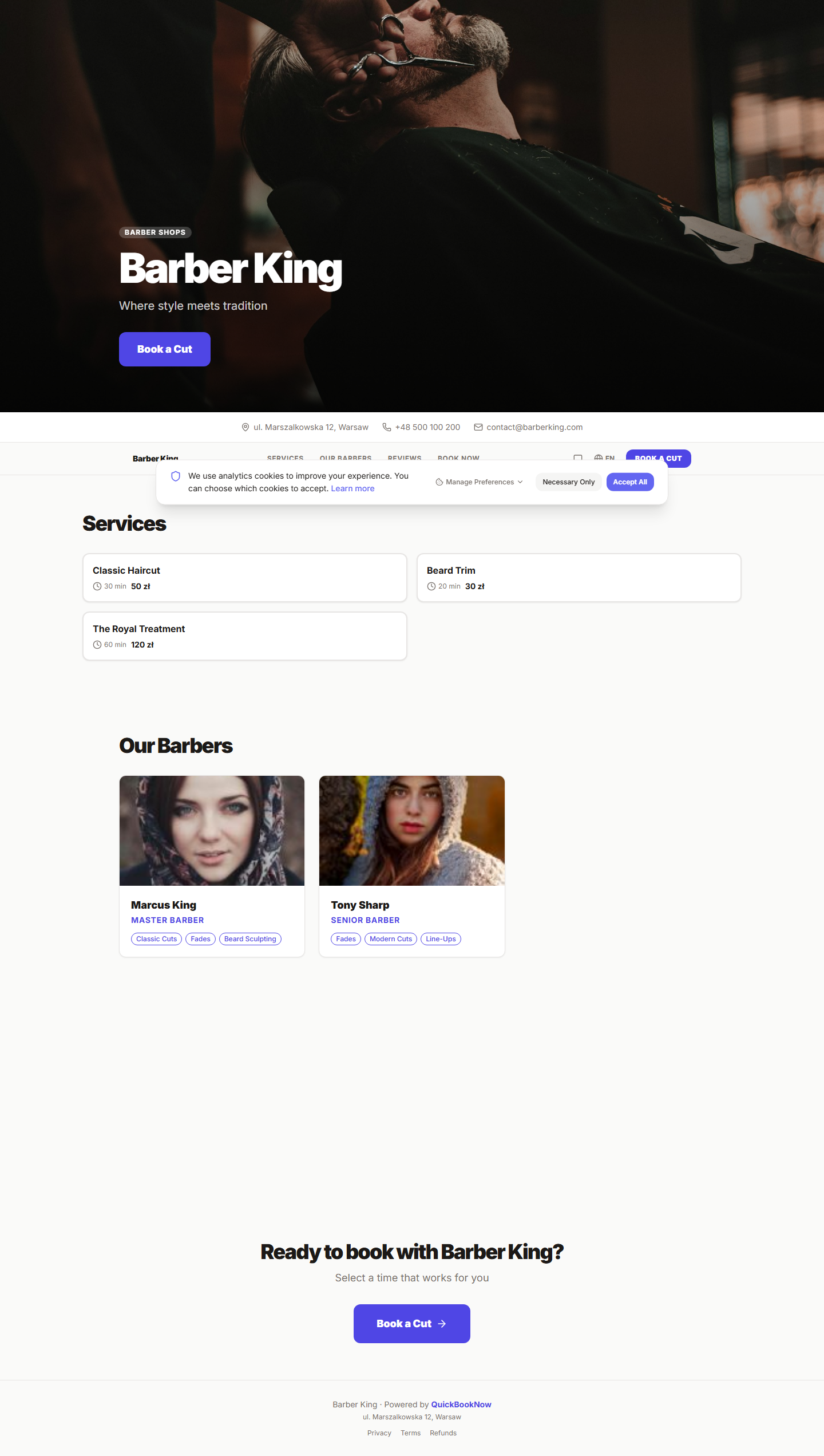 From solo barbers to restaurant chains — set up in 60 seconds, take your first booking today.